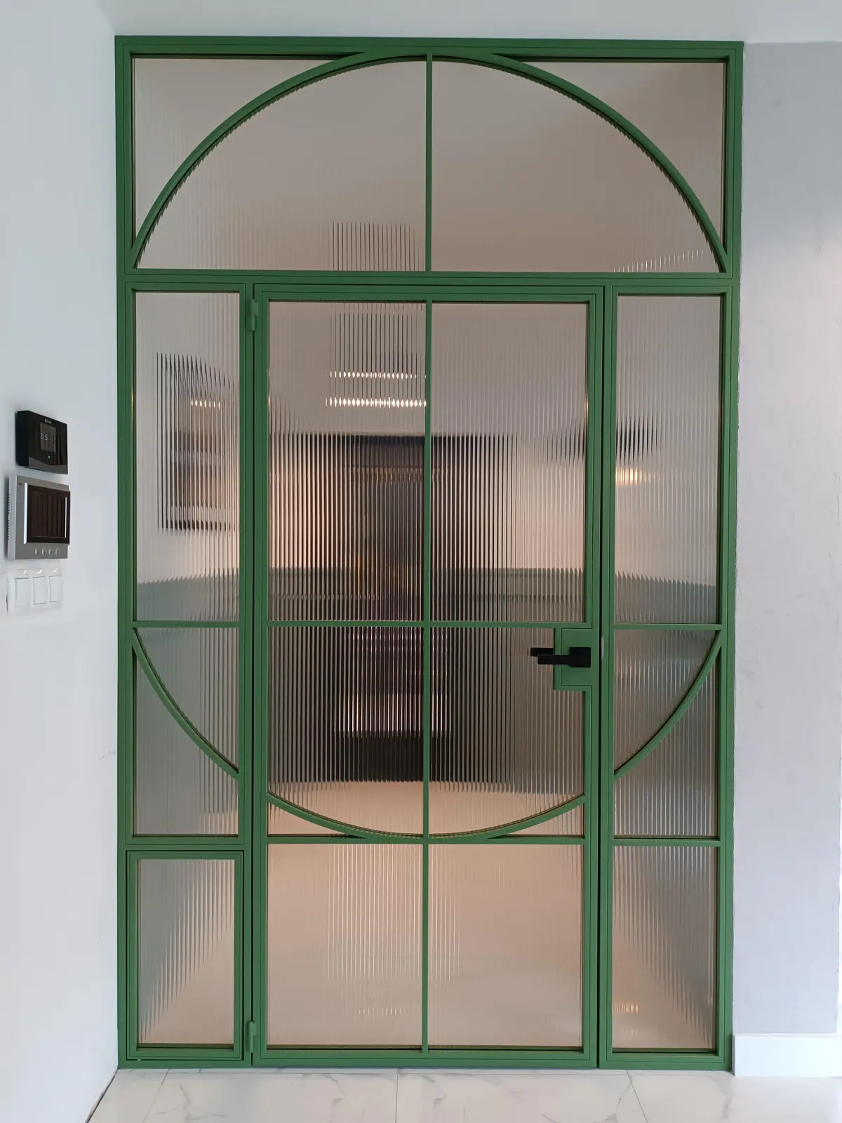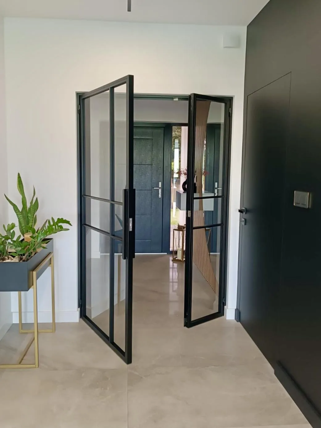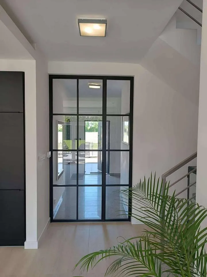 Solidne drzwi otwierane ze stalową ramą i hartowanym szkłem.